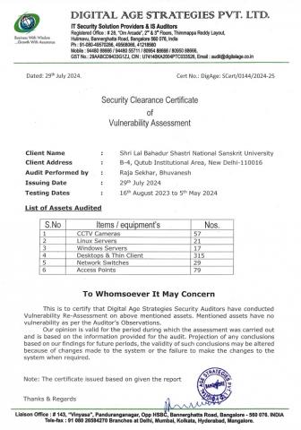 Security Clearance Certificate of Vulnerability Assessment |