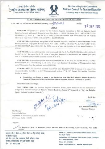 University Name Change Letter in NCTE |