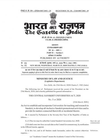 Central Sanskrit University Act-2020 |