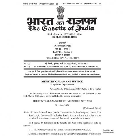 केंद्रीय संस्कृत विश्वविद्यालय अधिनियम -2020 |